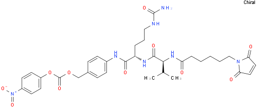 | 中文名稱(chēng) | 馬來(lái)酰亞胺基己酰-L-纈氨酸-L-瓜氨酸對(duì)氨基芐醇 對(duì)硝基苯基碳酸脂 |